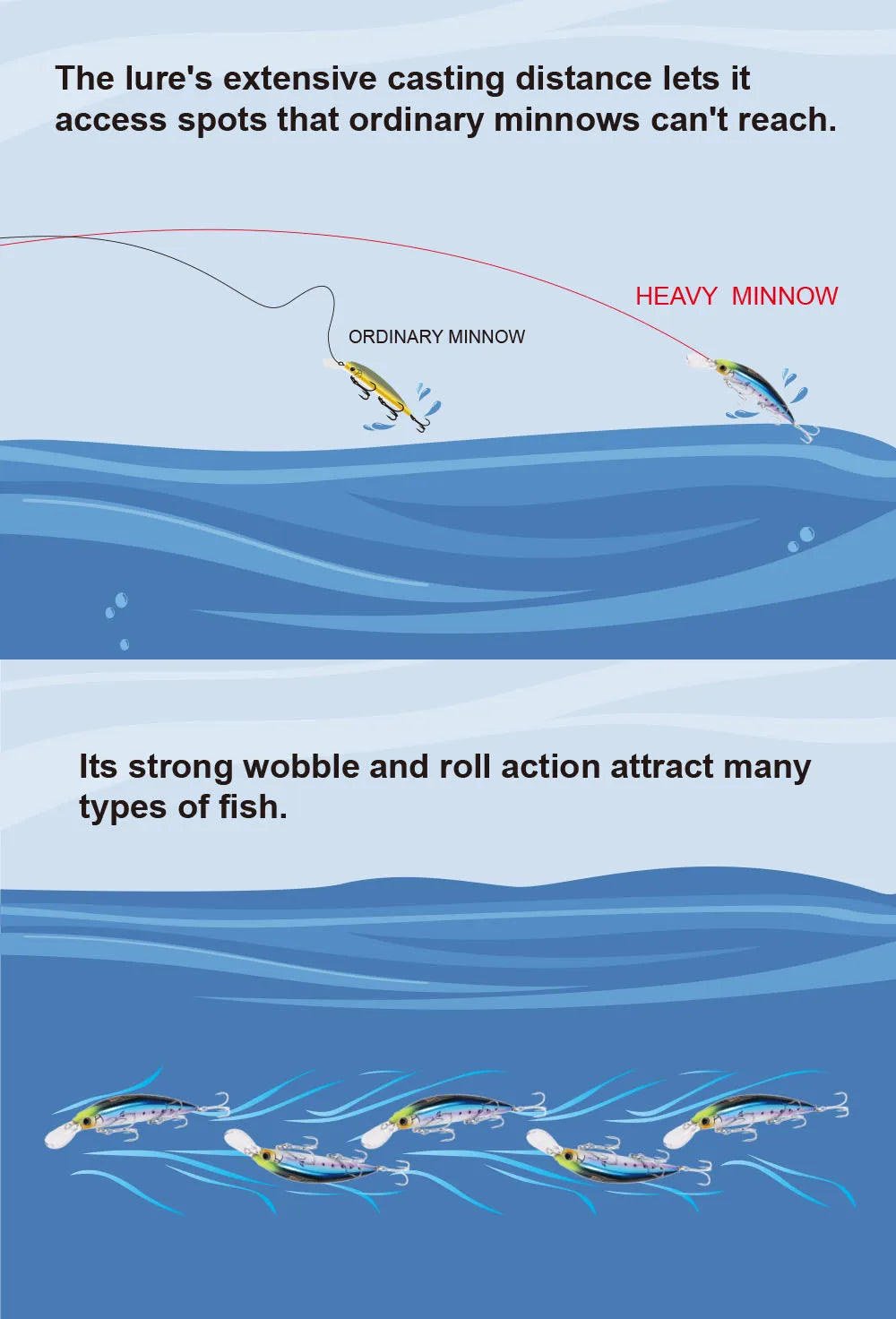 Caractéristique : Leurre polyvalent, facile à utiliser et efficace pour attirer différents types de poissons